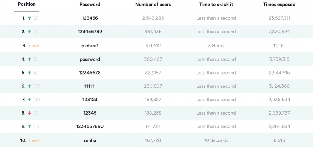 2020 yılı içinde de sızdırılan 275 milyon 669 bin 516 parola incelendi. Sızdırılan parolalar içinde “123456” parolasının en çok kullanılan olduğu saptandı. 23 milyon 597 bin 311 kez kullanıldığı tespit edilen bu parolayı aşmak için birkaç saniye harcamak yeterli oluyor.