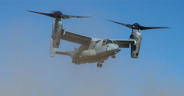 Donanma Hava Tesisi El Centro, ABD Donanması’na ait MV-22 Osprey uzun menzilli tiltrotor helikopterinin düştüğünü doğruladı. Kazada can kaybı olmadı.