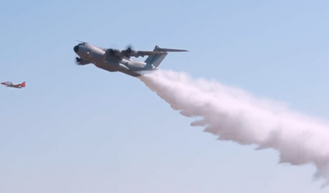 EuroNews’in haberine göre Askeri nakliye uçaklarında orman yangınlarına karşı kullanmak üzere takılıp çıkartılabilen bir kiti deneyen Airbus, bu test sırasında on saniyeden daha kısa bir sürede yüzeye 20 ton kadar su boşattı.