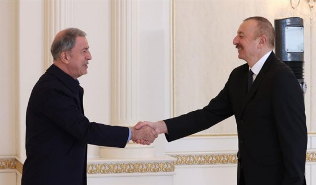 Bakan Akar, beraberinde Genelkurmay Başkanı Orgeneral Yaşar Güler ve Kuvvet Komutanları ile geldiği Azerbaycan’ın başkenti Bakü’de Cumhurbaşkanı İlham Aliyev tarafından kabul edildi.