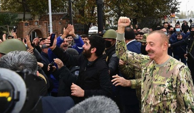 Aliyev, “Şimdi sorunun siyasi çözüm aşamasına geçtik. Bu aşamada da Azerbaycan istediğini elde ediyor ve edecektir. Sorunun çatışma aşaması bitmiştir. Biz düşmanı kapitülasyon imzalamak zorunda bıraktık. Bugüne kadar işgal altında bulunan Laçın, Ağdam ve Kelbecer illeri de geri veriliyor. Bakın onlar nasıl vahşilikler yapıyor. Evleri, binaları, okulları yakıyorlar, ağaçları kesiyorlar. Elektrik hatlarını kırıyorlar. Tüm dünya bunu görüyor. Ne vicdanları, ne de ahlakları var. Bu nedenlerle 2. Karabağ Savaşı’nda elde edilen zafer büyük tarihi önem taşıyor. Bu sadece Azerbaycan’ın kendi toprağını işgalcilerden kurtarması konusu değildir. Bu aynı zamanda tüm dünyaya işgalcilerin sonunun nasıl olacağını gösteriyor.” ifadelerini kullandı.