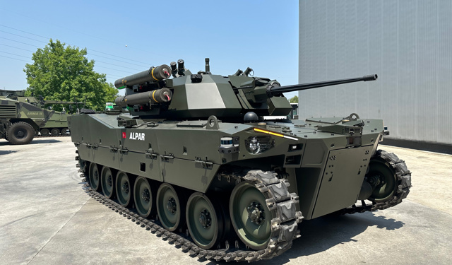 İlk kez tanıtılan ALPAR insansız kara aracı, üzerinde mızrak kulesine entegre 30mm top ve ROKETSAN tarafından geliştirilen 2 adet orta menzilli tanksavar füzesi OMTAS bulunduruyor.