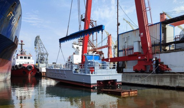 Gemiden karaya çıkarma amaçlı kullanılacak olan LCVP tipi çıkarma botları suya indirildi.
