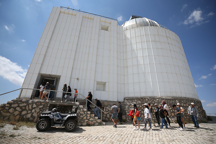 Gökyüzü sevdalıları, uluslar arası uzay çalışmalarında “atmosfer açısından dünyadaki en iyi yerden biri” olarak kabul edilen ve Türkiye’nin aktif en büyük gözlem evi olan TÜBİTAK Ulusal Gözlem Evi’ni de ziyaret etme imkanı buldu. Etkinliğin düzenlendiği Saklıkent Kayak Merkezi’nin eteklerinden 7 km’lik dağ yolunu araçlarla tırmanarak 2 bin 500 metre rakımlı Bakırlıtepe’deki gözlem evine ulaşan katılımcılar, uluslararası uzay çalışmalarında kullanılan 4 dev optik teleskop hakkında bilgi aldı.