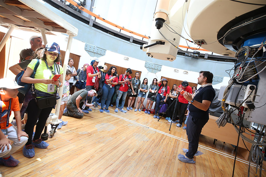 Beydağları’nın en yüksek tepelerinden biri olan Bakırlıtepe’de kurulu teleskoplardan 1,5 metre ayna çapı ile Türkiye’nin en büyük optik teleskopu RTT 150’de gözlem heyecanı yaşandı. Yıldız ışığını dalga boylarına ayırma ve içindeki gökcisimlerinin kimyalarını inceleme imkanı vermesi nedeni ile de Türkiye’nin ilk ve en büyük tayf çekeri olarak bilinen RTT 150 teleskobu, yoğun ilgi gördü.