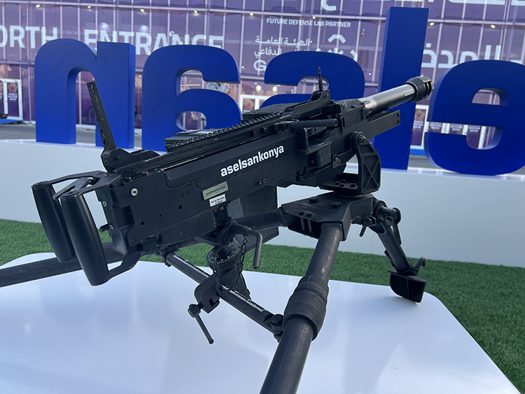 MAKS40’ın fuarda piyade kullanımı için çatalayak (tripod/üç ayak) üzerine monte edilmiş versiyonu tanıtıldı.