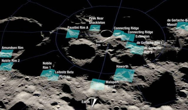 NASA; Ay’ın güney kutbundaki işaretli alanlarda su, buz ve karanlık kraterlerde bulunan önemli kaynaklar olduğuna inanıyor. NASA’nın Gezegen Bilimi Bölümü’nün Ay bilimi lideri Sarah Noble’a göre ise bu bölgeler daha önce keşfedilmedi.