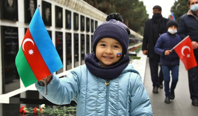 Azerbaycan ordusunun Laçın’a girmesinin ardından binlerce Azerbaycanlı, Türk ve Azerbaycan bayraklarıyla Şehitler Hıyabanı’na ziyarette bulundu.