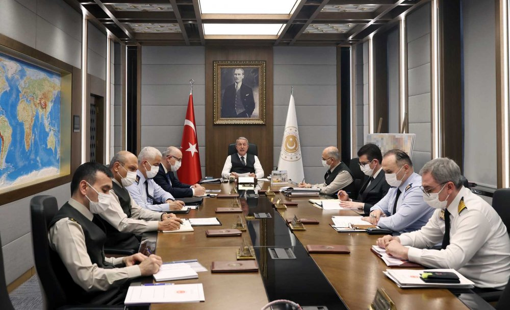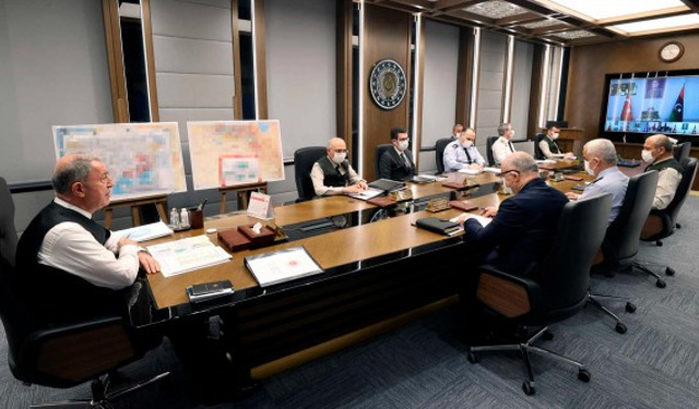 Millî Savunma Bakanı Hulusi Akar başkanlığında Genelkurmay Başkanı Orgeneral Yaşar Güler, Kara Kuvvetleri Komutanı Orgeneral Musa Avsever, Deniz Kuvvetleri Komutanı Oramiral Adnan Özbal, Hava Kuvvetleri Komutanı Orgeneral Hasan Küçükakyüz, Bakan Yardımcısı Yunus Emre Karaosmanoğlu ve birlik komutanlarının katılımıyla gerçekleşen video telekonferans toplantısında devam eden faaliyetlere ve sahadaki son duruma ilişkin bilgiler değerlendirildi.