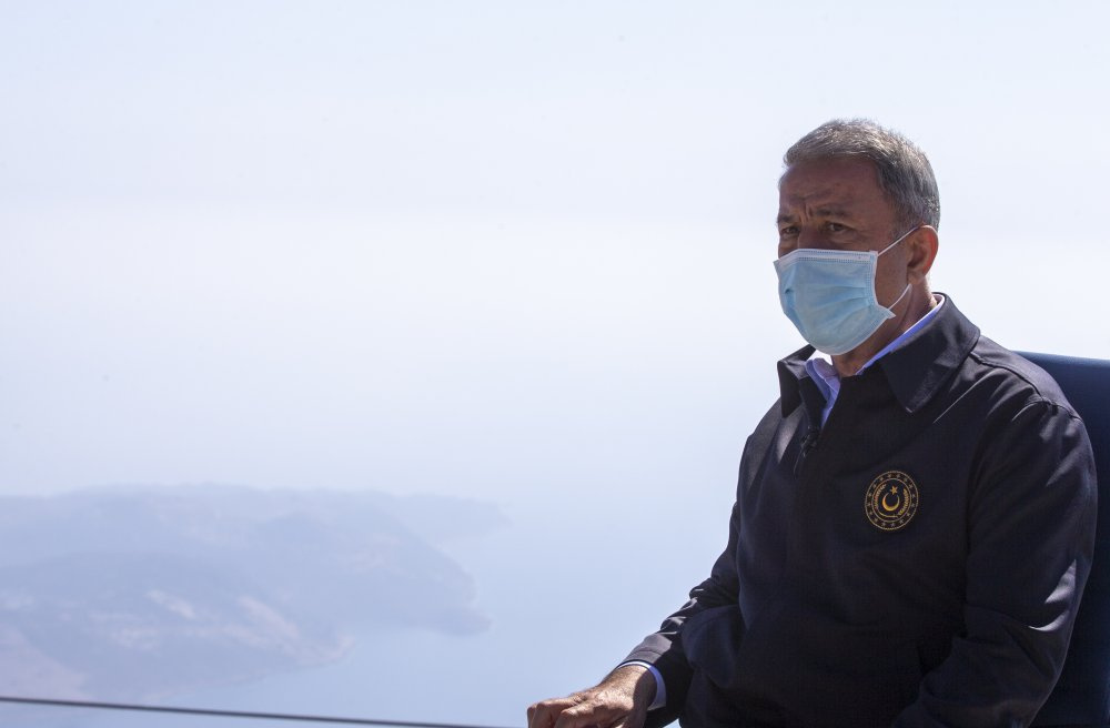Akar, Yunanistan’ın istediği 40 bin kilometrekarelik deniz yetki alanının Kaş açıklarından başladığını, deniz yetki alanının yaklaşık 10 kilometrekarelik Meis Adası’ndan dolayı Yunanistan’a verildiğini söyleyen Bakan Akar, “Bir tarafta 10 kilometrekarelik ada, diğer taraftan 780 bin kilometrekarelik bir kara, 83 milyonluk bir ülke. ‘Bu taksimi kurt yapmaz kuzulara şah olsa.’ diyorlar. Dolayısıyla bu manada herkesi aklıselime davet ediyoruz. Sadece Yunanistan’ı değil, üçüncü tarafların da bu manada dikkatli olması, objektif olması ve taassuptan uzak olması lazım. Meseleye aklıselimle bakmaları, ön yargısız bakmaları lazım. Hiçbir zaman oldubittiyi kabul etmeyeceğimizi, haklarımızı çiğnetmeyeceğimizi defaten söyledik, söylemeye devam ediyoruz. Bu konuda kararlıyız, kararlı olduğumuzu tekrar söylüyoruz.” ifadelerini kullandı.
