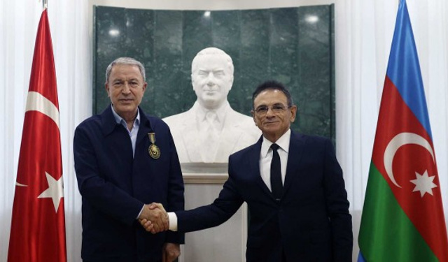 Azerbaycan Savunma Sanayi Bakanı Medet Guliyev ise “Aziz dostum, kardeşim!” diye hitap ettiği Millî Savunma Bakanı Hulusi Akar’ı Bakanlığında ağırlamaktan ve madalya tevcihinden şeref duyduğunu belirtti.