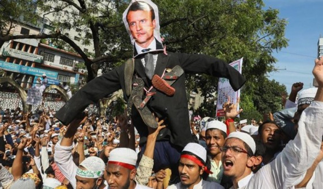 Dakka’da, çarşamba günü Baitul Mokarram Camisi’nde toplanan İslami Oikya Jote Partisinden yüzlerce kişi, Fransa ve Macron karşıtı gösteri düzenlemiş ve Bangladeş Başbakanı Şeyh Hasina hükümetinden “Fransa ve Macron’u kınaması” talebinde bulunmuştu.