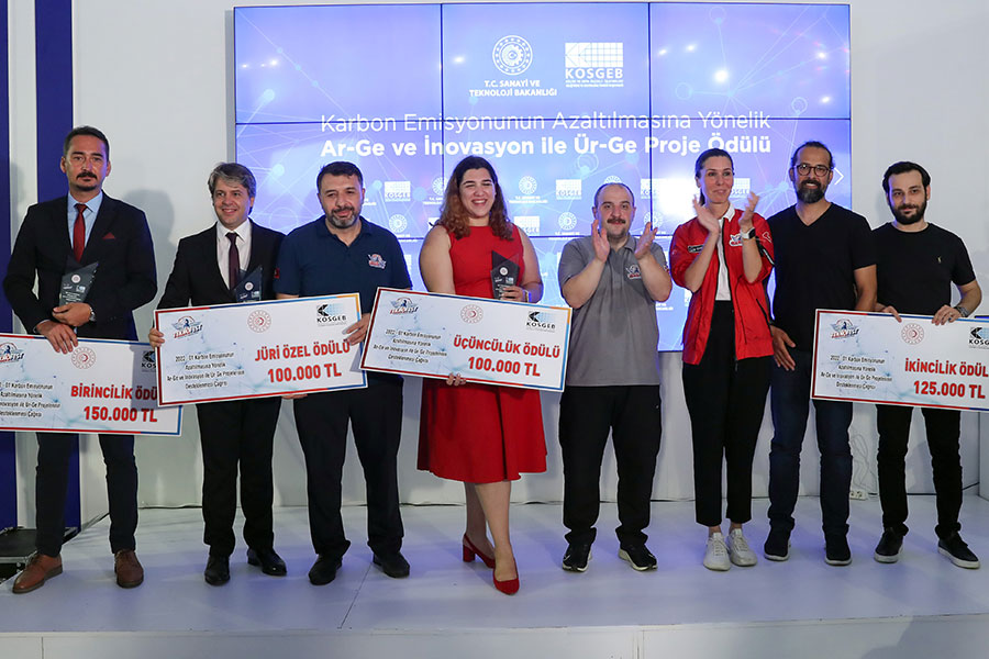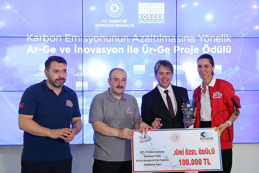KOSGEB’in sürdürülebilir kalkınmanın önemli dinamiklerinden olan karbon emisyonun azaltımı konusundaki 2 milyon lira üst limitli çağrısı sonuçlandı. Çağrı kapsamında 21 işletmenin desteklenmesi kararı alındı. Sanayi ve Teknoloji Bakanı Mustafa Varank, TEKNOFEST Karadeniz’de en yüksek puanı alan 3 proje ile jürinin seçtiği bir projeye ödül verdi.
