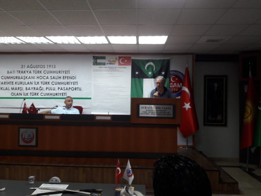 Toplantıya konuşmacı olarak Rumeli Balkan Stratejik Araştırmalar Merkezi’nden Hasan Özkan, Batı Trakya Özerk Müzakere Meclisi Başkanı Feruh Özkan, BTTDD eski Başkanlarından Taner Mustafaoğlu, Anayasa Profösörü Ferman Demirkol, Ömer Özkaya, Recep Varol ve Koray Büyükasar katıldı.