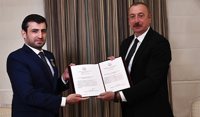ASELSAN Yönetim Kurulu Başkanı Haluk Görgün’le birlikte İlham Aliyev’in makamında ağırlanan Selçuk Bayraktar, İlham Aliyev tarafından verilen “Karabağ Nişanı” ile onurlandırıldıklarını resmi Twitter hesabından yaptığı paylaşımla duyurdu. Bayraktar paylaşımında, “Babam Özdemir Bayraktar ve ağabeyim Haluk Bayraktar ile birlikte Azerbaycan Cumhurbaşkanı Sayın İlham Aliyev tarafından Karabağ Nişanı’na layık görülmekten dolayı büyük şeref ve onur duyduk. #TekMilletİkiDevlet’in ortak geleceği için çalışmaya devam edeceğiz.” dedi.