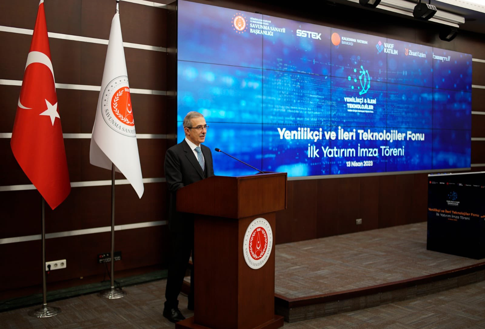 “Cumhurbaşkanımız Sayın Recep Tayyip Erdoğan’ın liderliğinde oluşturulan “Küresel Güç Vizyonu”na uygun şekilde, yol gösterici bir Türkiye için, Türk savunma sanayiini özgün tasarım ve ileri teknoloji yetenekleriyle küresel bir oyuncu haline getirmeyi hedefliyoruz. Başkanlığımız himayesinde, SSTEK öncülüğünde, Vakıf Katılım, Ziraat Katılım ve Türkiye Kalkınma ve Yatırım bankalarının ortaklığı ile Yenilikçi ve İleri Teknolojiler Katılım Girişim Sermayesi Yatırım Fonu’nu kurduk. Bu fonla amacımız, savunma sanayimizin dışa bağımlılığını azaltmak kadar, özellikle yurtdışında derin teknolojiler olarak adlandırılan yenilikçi teknolojilere ve girişimcilere destek olmaktırFonumuzun ilk yatırımını siber güvenlik alanında faaliyet gösteren Beam Teknoloji A.Ş.’ye yapma kararını bugün imza altına alacağız.