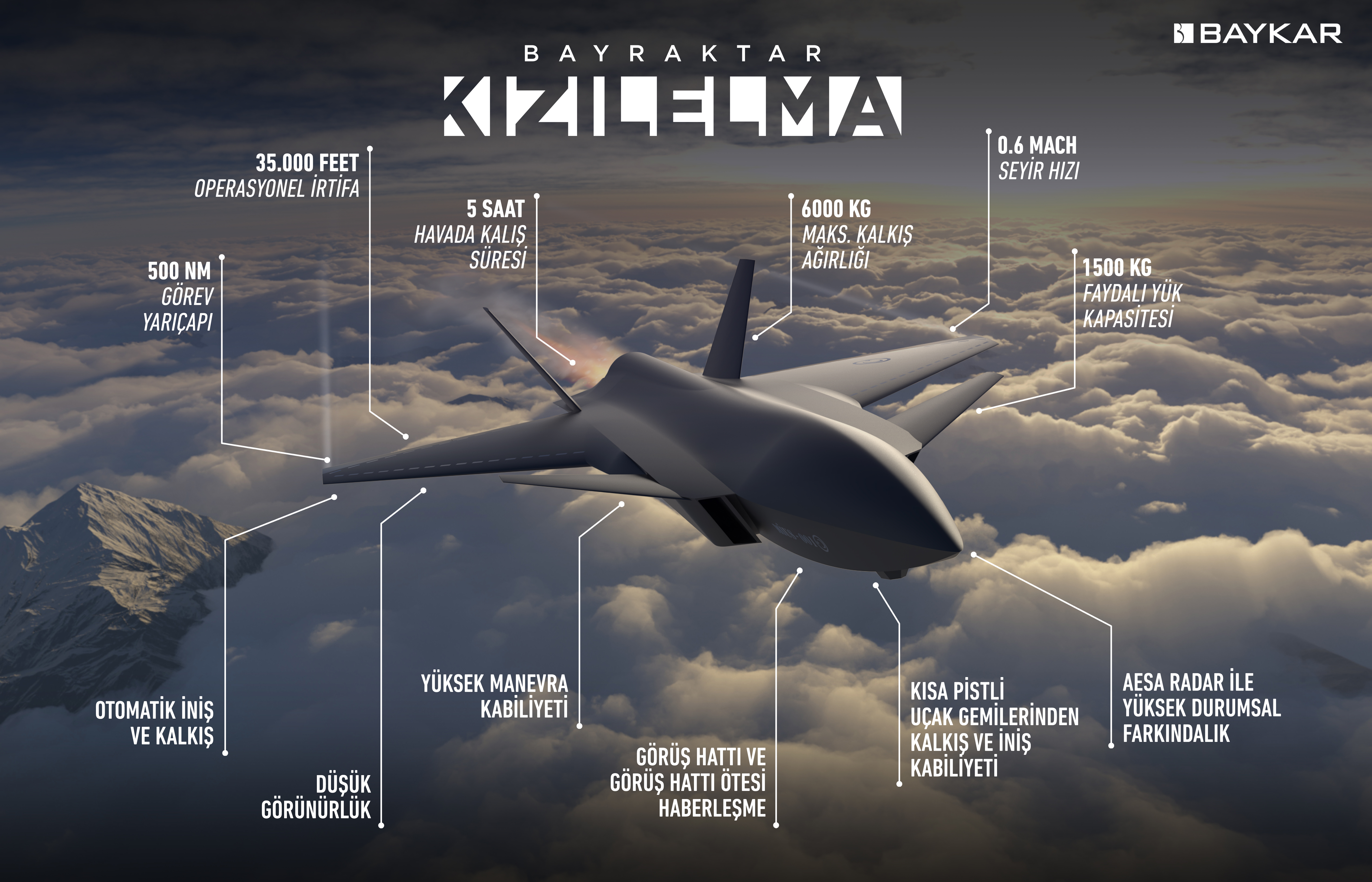 Yüzde 100 BAYKAR özsermayesi ile 2021 yılında üretimine başlanan BAYRAKTAR KIZILELMA’nın 1 yıl gibi rekor bir sürede uçuşunu gerçekleştirmesi Türk havacılık tarihi için önemli bir dönüm noktası oldu.BAYRAKTAR S/İHA’ların tecrübesiyle yola çıkılarak geliştirilen KIZILELMA, geleceğin muharebe konseptine yön verecek. Agresif manevralarla hava-hava muharebesi icra edebilecek olan BAYRAKTAR KIZILELMA (MİUS), düşük radar kesitiyle güvenlik güçleri için güç çarpanı olacak. Kısa pistli gemilerden kalkış ve iniş kabiliyetine sahip olacak olan KIZILELMA, gövde içinde taşıyacağı mühimmatları ile belirlenen hedeflere taarruz gerçekleştirebilecek. 1.5 ton faydalı yük taşıma kapasitesine sahip BAYRAKTAR KIZILELMA’nın iki farklı tipte tek motorlu ve çift motorlu olmak üzere üç versiyonu bulunuyor.