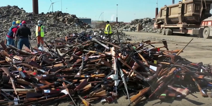 TRT HABER’in verdiği bilgilere göre, kamyon kasalarına yüklenip geri dönüşüm fabrikasına götürülen 22 bin eski silah, eritilmek suretiyle 60 ton çeliğe dönüştürüldü.