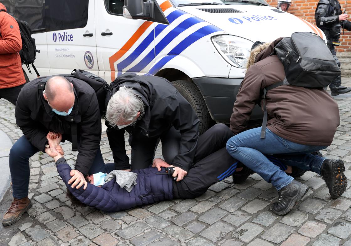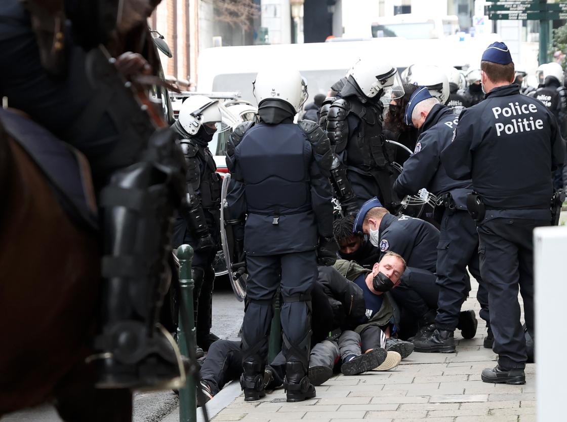 Polis, gösterinin izinsiz olduğu gerekçesiyle çok sayıda göstericiyi gözaltına aldı. Brüksel polisi, daha önce yeni tip koronavirüs (Kovid-19) salgınından dolayı gösteride en fazla 100 kişiye izin verilebileceğini duyurmuştu.