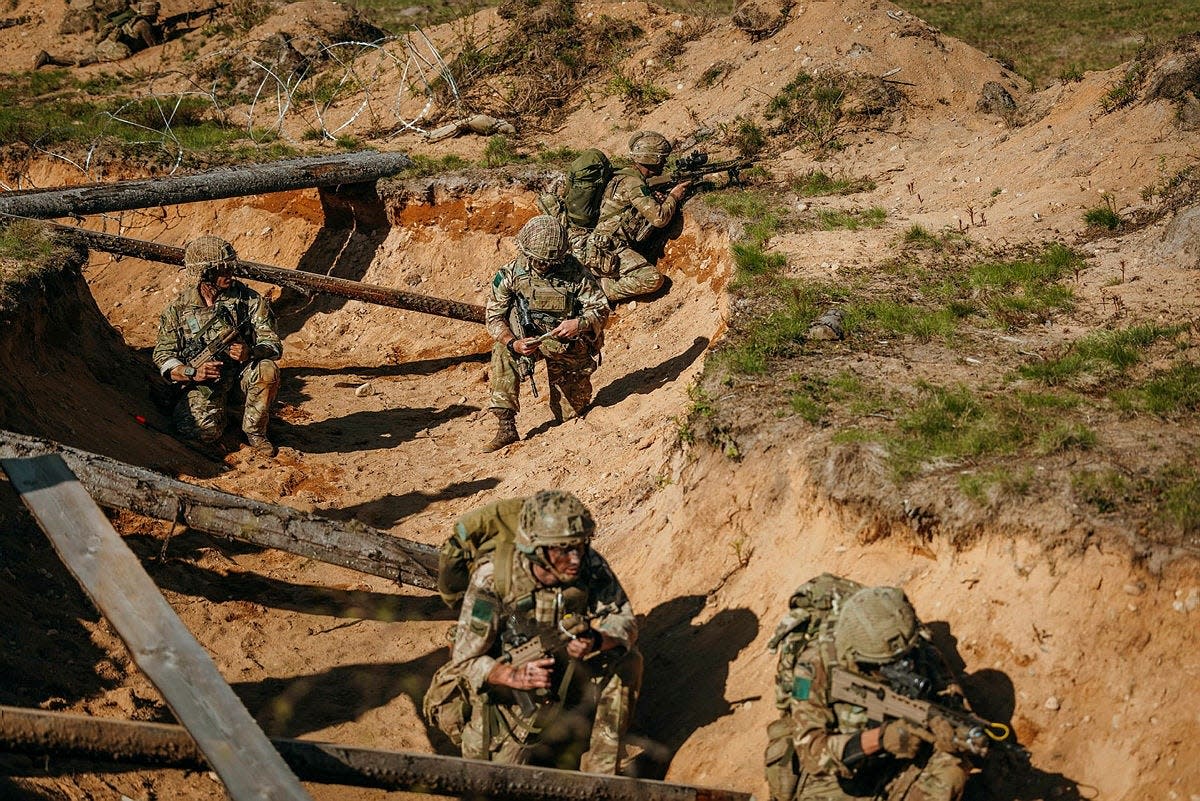 Cephe hattında, genellikle zırhlı birlikler, tanksavar birlikleri ve piyade birliklerinin entegrasyonu sağlanır. Ayrıca, hava desteği ve savaş uçakları da bu hattın korunmasında önemli rol oynar. Zırhlı araçlar düşman birliklerine karşı güçlü bir savunma sağlarken, hava desteği de düşman hatlarını bombalayarak ileri hatları zayıflatabilir ve bir taarruz imkânı yaratabilir.
