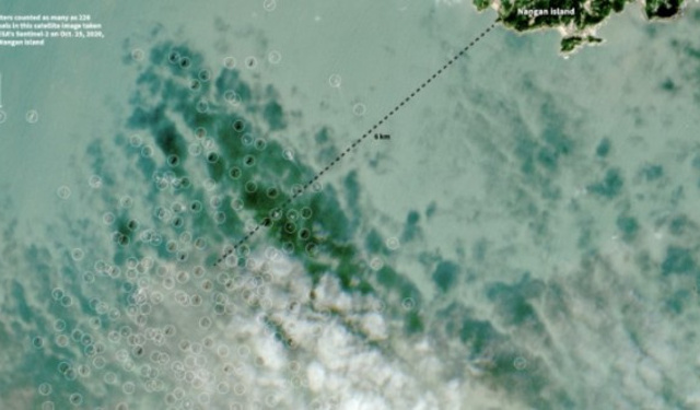 Yahoo news tarafından yapılan habere göre geçen sene alınan bir uydu görüntüsünde, Tayvan’ın Nangan Adası’nın yakınında 226 adet kum taraması yapabilen gemi saptandı. Tayvanlı sahil güvenlik ekipleri Çinli gemileri bölgeden uzaklaştırmak için düzenli devriyeler düzenliyor.