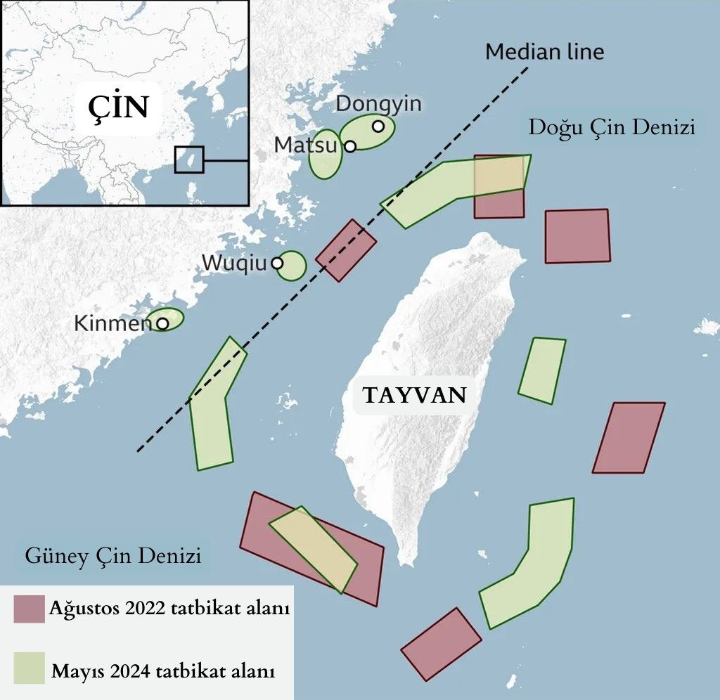 Çin, egemenlik ihtilafı içinde olduğu Tayvan’ın yeni lideri Lai Ching-te’nin göreve başlamasından üç gün sonra, Ada ve çevresini kuşatan kapsamlı askeri tatbikata başladı.