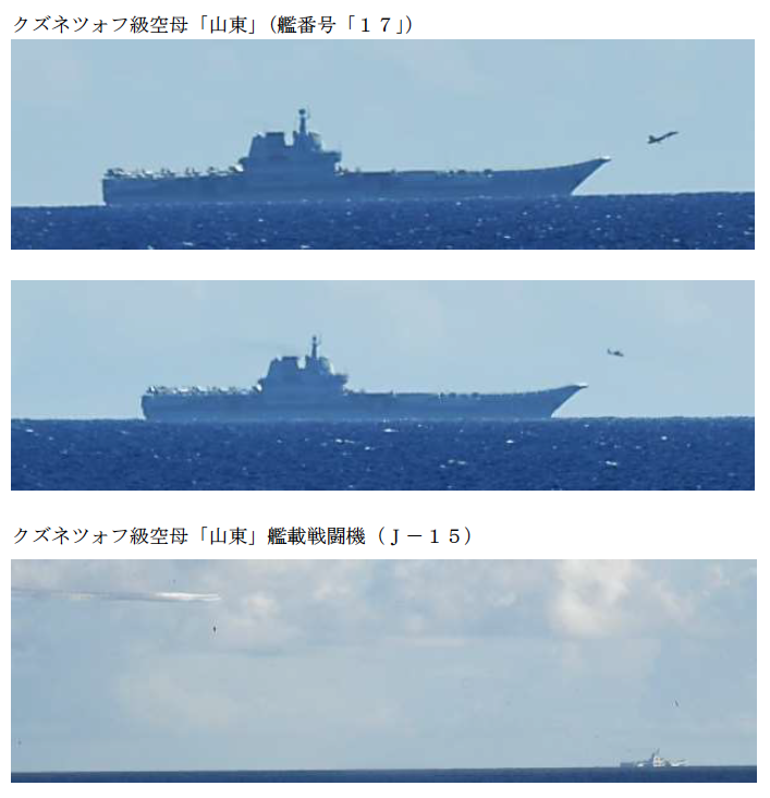 Japonya Genelkurmay Ofisi’nden (JSO) Salı günü yapılan açıklamaya göre, Çin Halk Kurtuluş Ordusu Deniz Kuvvetleri’ne bağlı Shandong Uçak Gemisi ve beraberindeki su üstü saldırı grubu, Filipin Denizi’nde bir hafta boyunca 240 savaş uçağı fırlatma ve kurtarma, 140 helikopter kalkış ve iniş eğitimi gerçekleştirdi.