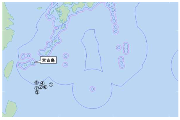 Miyako Adası’nın 240 ila 340 deniz mili kadar güney ve güneydoğusunda gerçekleşen bu konuşlanma sırasında, Çin Donanmasına ait, Yan’an ve Xiangyang Kruvazörleri, Guilin ve Zhanjang Muhripleri, Yuncheng Fırkateyni ve Hızlı Muharebe Destek Gemisi Chaganhu da hazır bulundu.