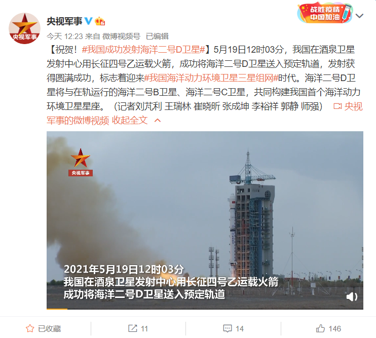CCTV Askeri Kanalı’nın (央视军事– yāngshì jūnshì) resmi Weibo hesabından yapılan paylaşımda, yörüngeye fırlatılan yeni uyduya ilişkin açıklamalar yer aldı. Açıklamada, Haiyang-2D (HY-2D) okyanus gözlem uydusunun Long March 4 taşıyıcı roketi kullanılarak yörüngede belirlenen konuma yerleştirildiği ifade edildi. Yeni uydu Haiyang-2B ve Haiyan-2C uyduları ile birlikte çalışarak Çin’in ilk “24 saat faal okyanus gözlem sistemini” oluşturacak.