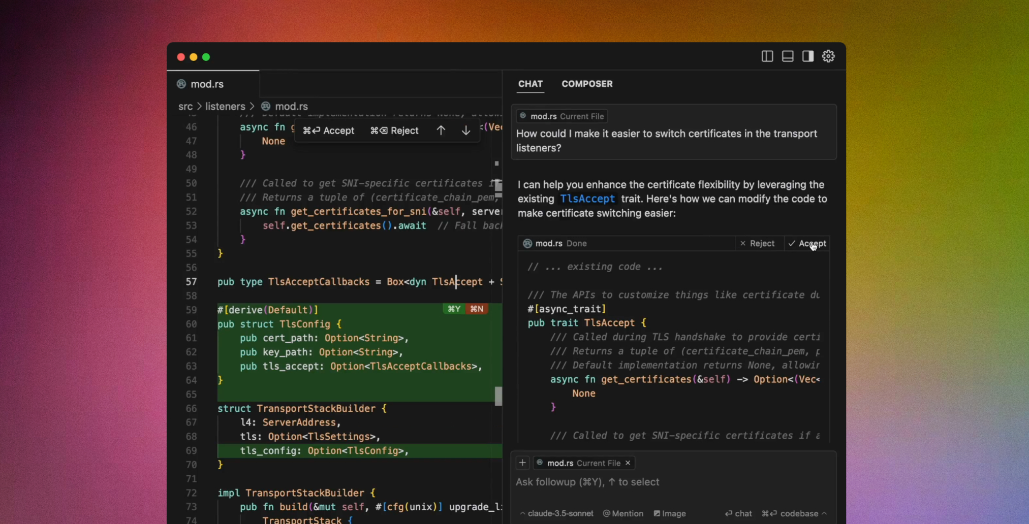 Cursor, kullanıcıların yazım tarzlarını öğrenmek ve buna uygun kod tamamlama önerileri sunmak için özellikle OpenAI’ın GPT-4 modeli ve Claude’ın Sonnet 3.5 gibi büyük dil modellerinden faydalanıyor. Bu modeller, hem kullanıcıların bağlama uygun kodlar yazmasına yardımcı oluyor hem de hata düzeltme sürecinde yüksek doğruluk sağlıyor.