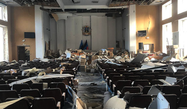 Saldırıda Donetsk eski belediye binası zarar gördü.