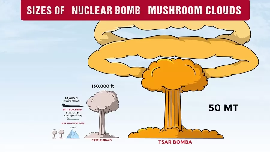 SSCB 1961’de şimdiye kadarki en büyük nükleer silahı test etti. Bu silah Çar Bombası olarak biliniyor. Patlamanın enerjisi en az 50 MT’ydi. Bu da 50 milyon ton TNT’ye eşdeğerdir. Çar Bomba, 100 MT verime sahip olacak şekilde daha da güçlü olacak şekilde tasarlanmıştı, ancak tam kapasitesi hiçbir zaman test edilmedi.