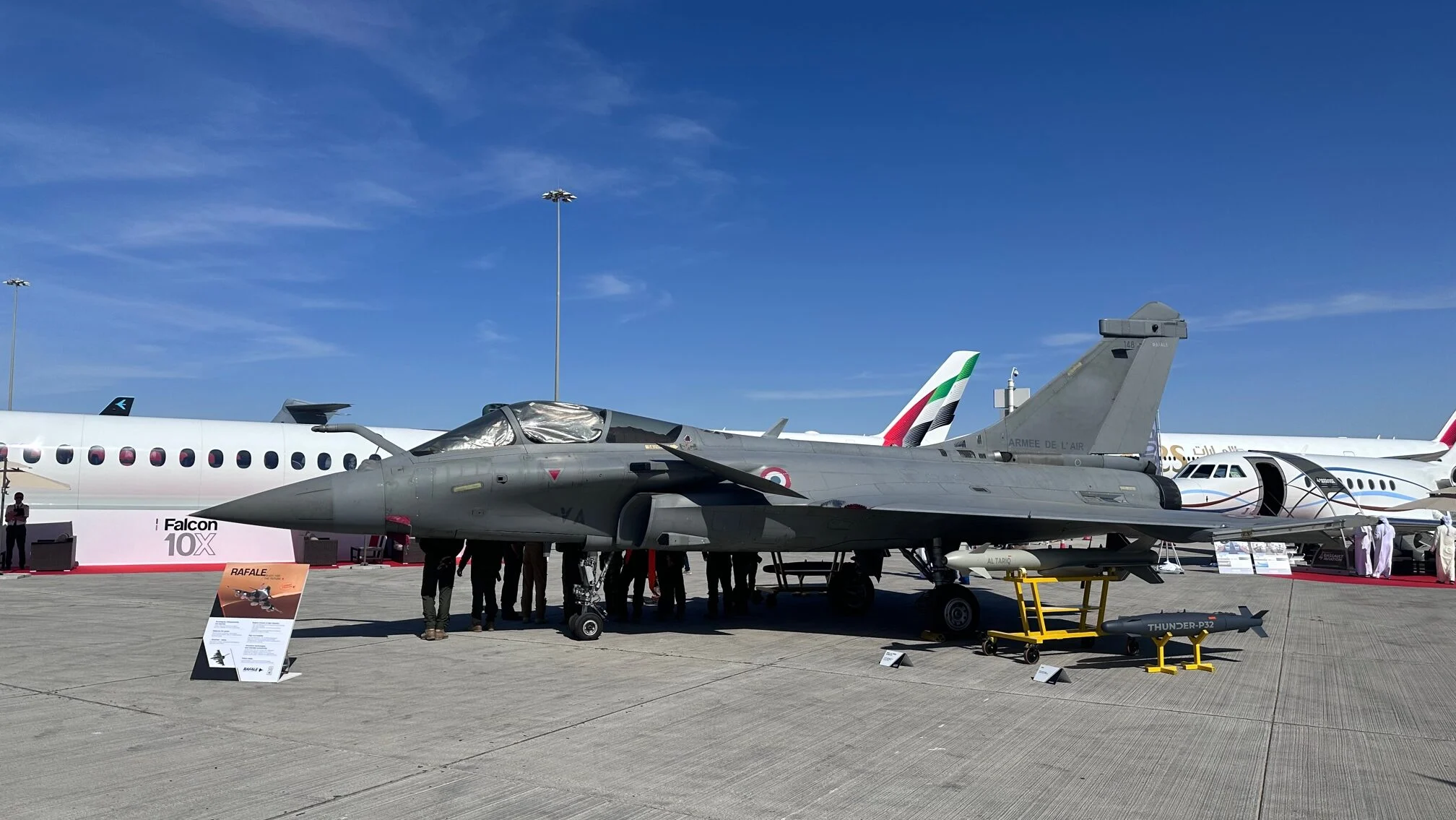 Al-Tariq’in hassas güdümlü Mk-81 ve Mk-82 mühimmatları bu hafta El-Maktum Uluslararası Havalimanında bulunan Rafale FR3 uçağının yanında da sergilendi. Bu mühimmatlar ayrıca BAE’nin Mirage 2000 ve F-16 uçaklarında kullanılıyor.