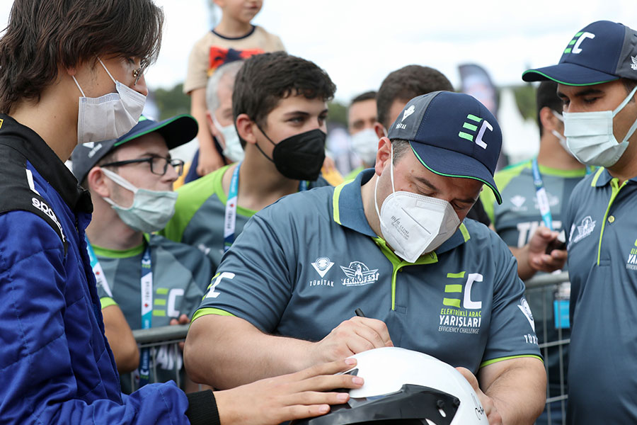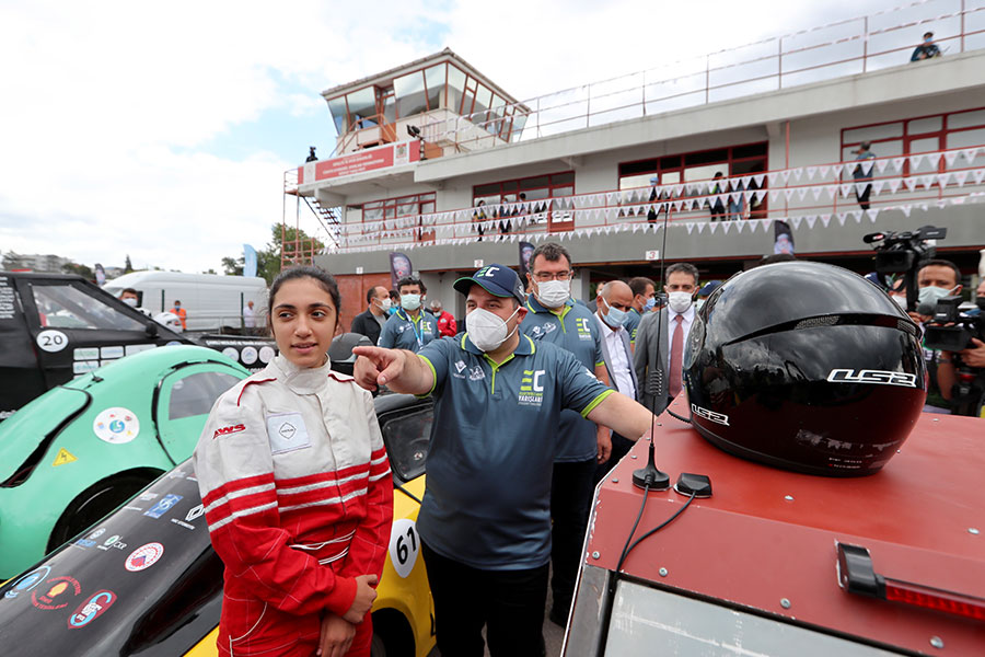 Varank, Efficiency Challenge (EC) Elektrikli Araç yarışması öncesinde pistte bulunan üniversiteli öğrencileri tek tek ziyaret ederek, başarılar diledi.