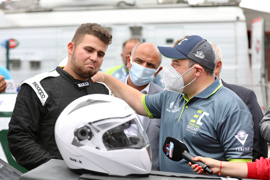 Sonrasında yarışmaya bayrak sallayarak start veren Varank, bazı üniversitelerin pistin dışında bulunan araçlarını kullandı.
