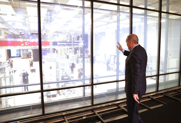 “Bir dönem krizlerle siyasi istikrarsızlıklarla konuşulan bir ülkenin bugün başarılarıyla, Karadeniz’de yaptığı devasa doğal gaz keşifleriyle, Doğu Akdeniz’de gerçekleştirdiği sismik araştırmalarıyla gündeme gelmesi hiç şüphesiz sabrın, gayretin ve inancın bir sonucudur. Birkaç milyar dolarla ülke ekonomisinin çökertildiği, ülkenin kaynaklarının bir avuç seçkine peşkeş çekildiği, terörle, şiddetle vandallıkla siyasetin şekillendirildiği eski Türkiye manzarası artık tamamen tarihe kavuşmuştur. Devlet-millet sırt sırta verdikçe inşallah ülkemizin bu başarı grafiği yükselmeye devam edecektir.”Cumhurbaşkanı Erdoğan MESS Teknoloji Merkezi’nin açılışını robotla yaptı