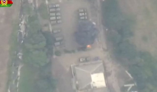 Bakanlık, Ermenistan ordusuna ait mevzilerin vurulma anının havadan çekilen görüntülerini de kamuoyu ile paylaştı.
