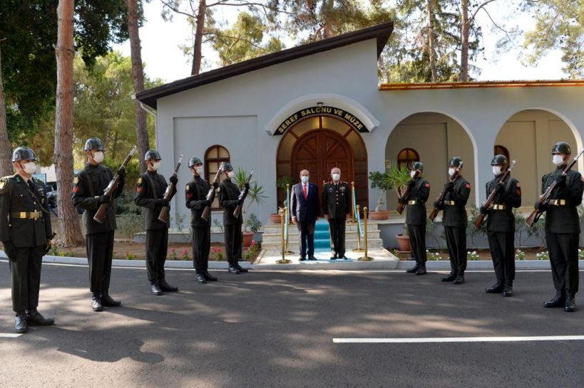 Cumhurbaşkanı Ersin Tatar, Kıbrıs Türk Barış Kuvvetleri Komutanlığı’nı ziyaret etti. Askeri törenle karşılanan Cumhurbaşkanı Tatar, Şeref Salonu’nda “Ziyaret Defteri”ni imzaladıktan sonra KTBK Müzesi’ni gezdi.