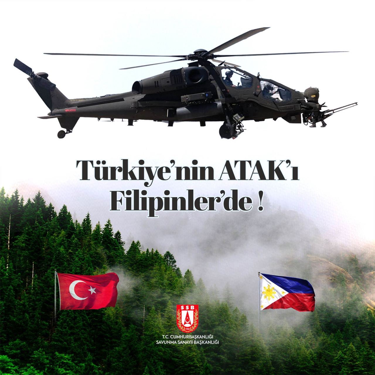 Yerli savunma sanayiinin lider firmalarından TUSAŞ tarafından üretilen 2 adet ATAK taarruz helikopteri 6 Nisan 2022’de Filipinler’e teslim edildi.