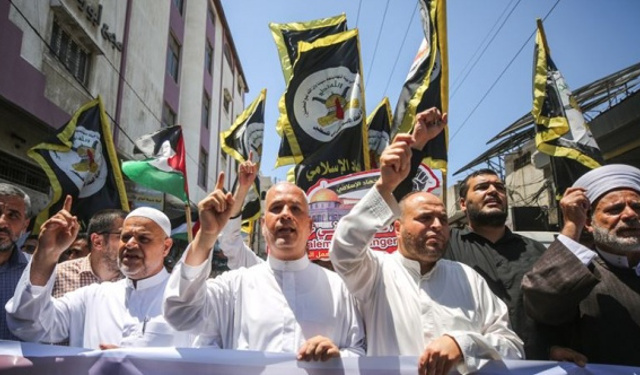 İslami Cihad hareketinin çağrısı üzerine Gazze‘de düzenlenen yürüyüşe yüzlerce Filistinli katıldı.