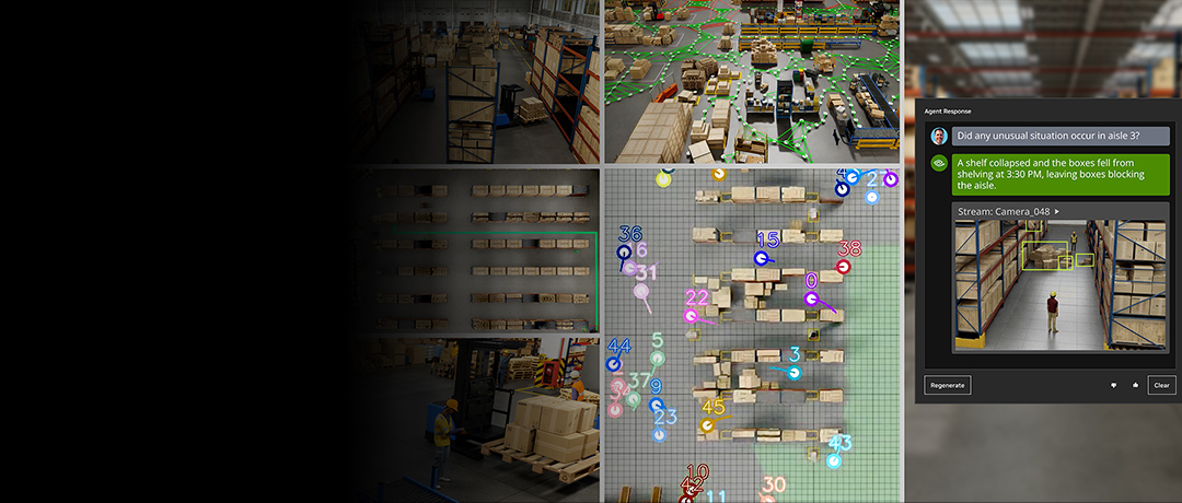 Isaac Mission Control, tüm robot filosunu koordine ederken, NVIDIA Visual Insight Agent, operasyon ekiplerinin sorularını yanıtlamak için yapay zeka ajanlarını kullanıyor. NVIDIA’nın bu yenilikçi yazılım paketi, endüstriyel otomasyonun geleceğini şekillendirerek ‘yapay zeka spor salonu’ olarak adlandırılan ortamlarda eğitim ve simülasyon aracılığıyla karmaşık endüstriyel süreçleri kolaylaştırıyor. Visual Insight Agent çerçevesine güç veren temel modelleri ile, operasyon ekiplerinin “Fabrikanın üçüncü koridorunda hangi durum meydana geldi?” gibi soruları yanıtlamasına yardımcı olmak için yapay zeka destekli ajanlar oluşturarak problemi çözmeye çalışıyor. Üretken yapay zeka destekli ajan, “Saat 15.30’da raflardan düşen kutular koridoru kapattı” gibi cevaplar vererek anında problemin kaynağını tespit etme ve bu verileri operasyon ekiplerine sunabilme yeteneklerine de sahip.