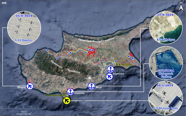 Larnaka Havalimanı, C-130 nakliye uçakları ve CH-47 Chinook helikopterlerine ev sahipliği yaparken, Andreas Papandreou Havalimanı’nda Amerikan V22-Osprey helikopterleri ile Alman ve Fransız güçlerinin de konuşlandığı belirtiliyor. Limasol Limanı’nda ise Amerikan ve diğer müttefik ülkelere ait savaş gemileri konuşlanmış durumda.