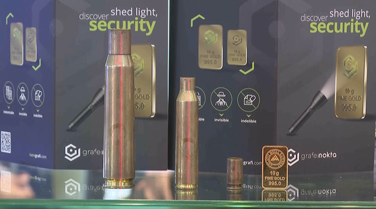 “Grafen nokta”, gözle görülmeyen ve UV ışık altında parlayan özel bir nano materyale karşılık geliyor. İlk kez “altın” üzerine uygulanan “grafen nokta”, mermi gibi mühimmatlara, plastikten metale, elektronikten araç yedek parçalarına, kozmetikten medikale kadar sınırsız uygulama alanına sahip bulunuyor.