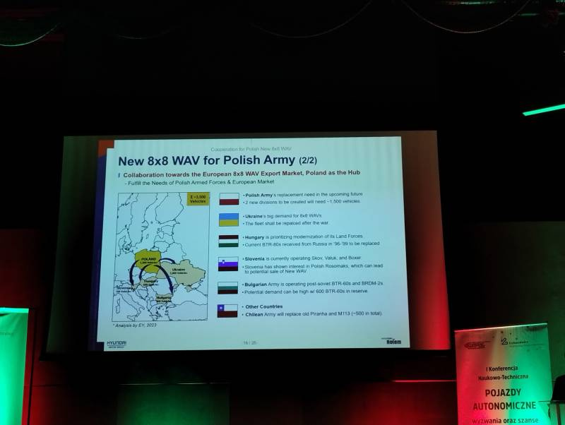 Aracın sunumunda paylaşılan infografiğe göre, zırhlı aracın potansiyel alıcısı olarak genelde eski Varşova ve Sovyet Paktı ülkeler olarak değerlendiriliyor ve 1500 civarı talep edilmesi bekleniyor. BTR-80’lerini değiştirmek isteyen Macaristan ve envanterinde 600’den fazla BTR-60 bulunduran Bulgaristan’a dikkat çekilirken, Latin Amerika’da Zırhlı Savaş Araçlarını değiştirmeyi planlayan Şili de grafikte yer almış. Böylece Hyundai Rotem’in Polonya’da bir üretim tesisi kurma kararı; sadece bölge ihtiyaçlarını değil, genişlemeyi ve askeri araç üretimi alanında kayda değer bir ilerlemeyi hedeflediğini gösteriyor.