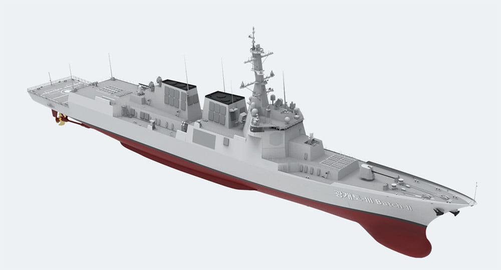 Güney Kore’nin KDX-III projesinin 2. Fazı kapsamında üreteceği 3 gemiden ilki olan ve 2022 yılında suya indirilen ROKS Jeongjo the Great gemisinin donatım ve test faaliyetleri devam ediyor. 10 bin+ ton deplasmana sahip olamsı beklenen Jeongjo the Great sınıfı gemilerde AN/SPY-1D(V) radar, AEGİS savaş yönetim sistemi, 48 hücreli MK-41 dikey atış sistemi ile Güney Kore tarafından geliştirilen 16 hücreli K-VLS ile 24 hücreli K-VLS II dikey atış sistemi, 8 adet SSM-700K Haeseong gemisavar füzesi, 127 mm baş topu ve yakın hava savunma sistemi olarak 2 adet Phalanx CIWS bulunacak.
