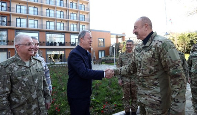 Sabah saatlerinde Şuşa’ya gelen Bakan Akar ve TSK Komuta Kademesi Azerbaycan Cumhurbaşkanı İlham Aliyev tarafından kabul edildi.