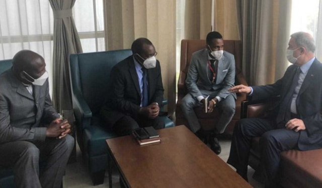 Cumhurbaşkanı Erdoğan’ın Kongo Demokratik Cumhuriyeti ziyaretine eşlik eden Millî Savunma Bakanı Hulusi Akar, Kongo Demokratik Cumhuriyeti Savunma Bakanı Emekli Tümgeneral Gilbert Kabanda Kurhenga ile bir araya geldi.