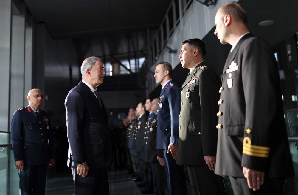 Türkiye’nin NATO Daimî Temsilcisi Büyükelçi Basat Öztürk, TMR Başkanı Korgeneral İsmail Üner ve diğer yetkililer tarafından karşılanan Bakan Akar, NATO Daimî Temsilciliği ile Türk Askerî Temsilciliğini ziyaret etti.