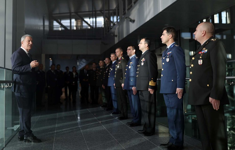 Millî Savunma Bakanı Hulusi Akar, NATO Savunma Bakanları Toplantısı’na katılmak üzere gittiği Brüksel’de NATO Karargâhı’na geldi.