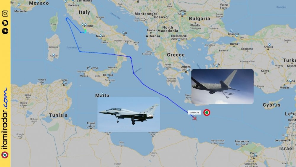 14 Aralık’ta İtalya’daki Torino Caselle Hava Üssü’nden MT55243, MT55244 kuyruk numarası ile havalanan Typhoon savaş uçaklarına, İtalyan Hava Kuvvetleri Boeing KC-767A yakıt ikmal uçağı, Mısır açıklarında yakıt ikmali gerçekleştirdi.